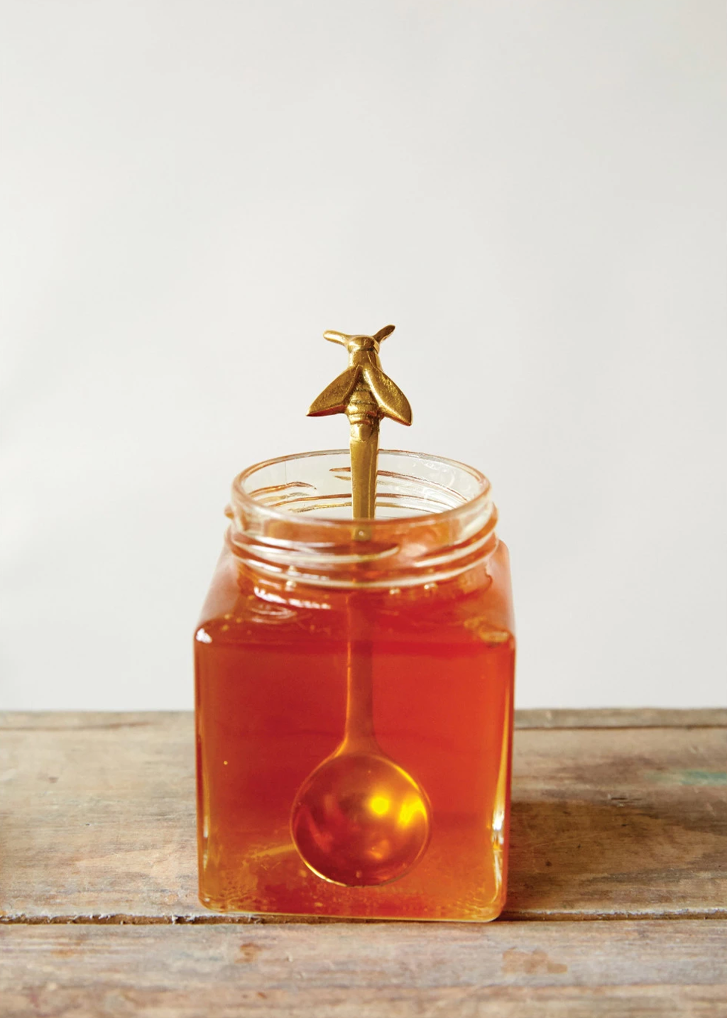 A delightful addition to any honey jar or sugar bowl, this spoon brings a bit of golden whimsy to every occasion.