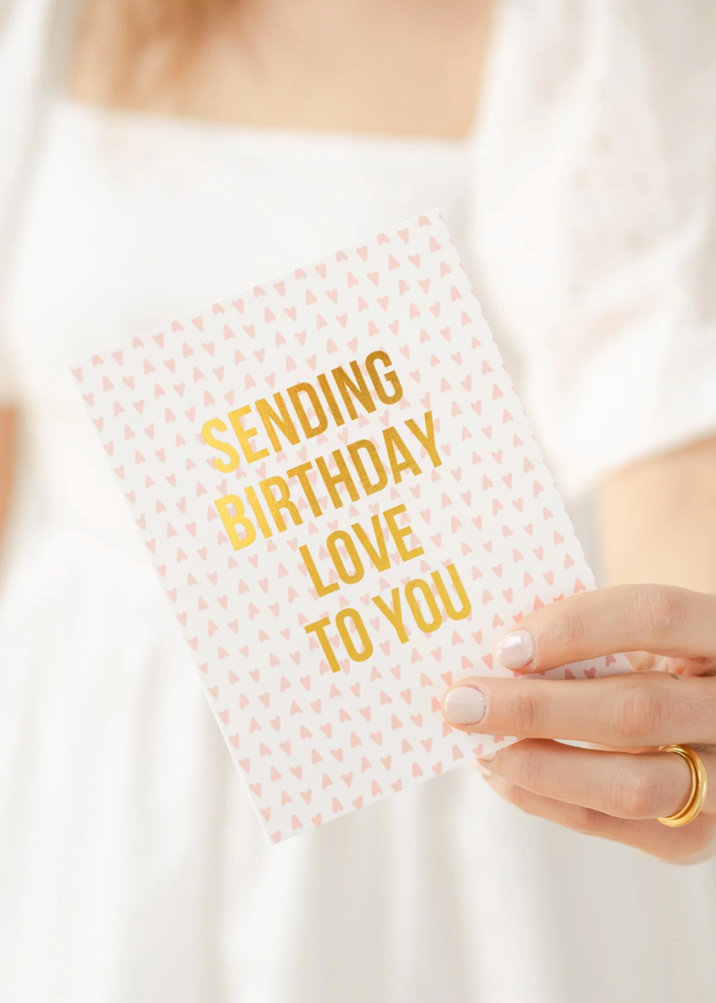 - Crisp white paper with pink heart pattern